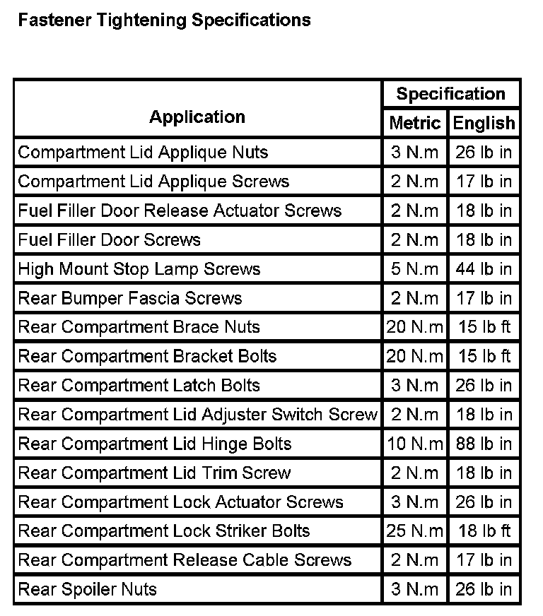 Trunk / Liftgate: Specifications