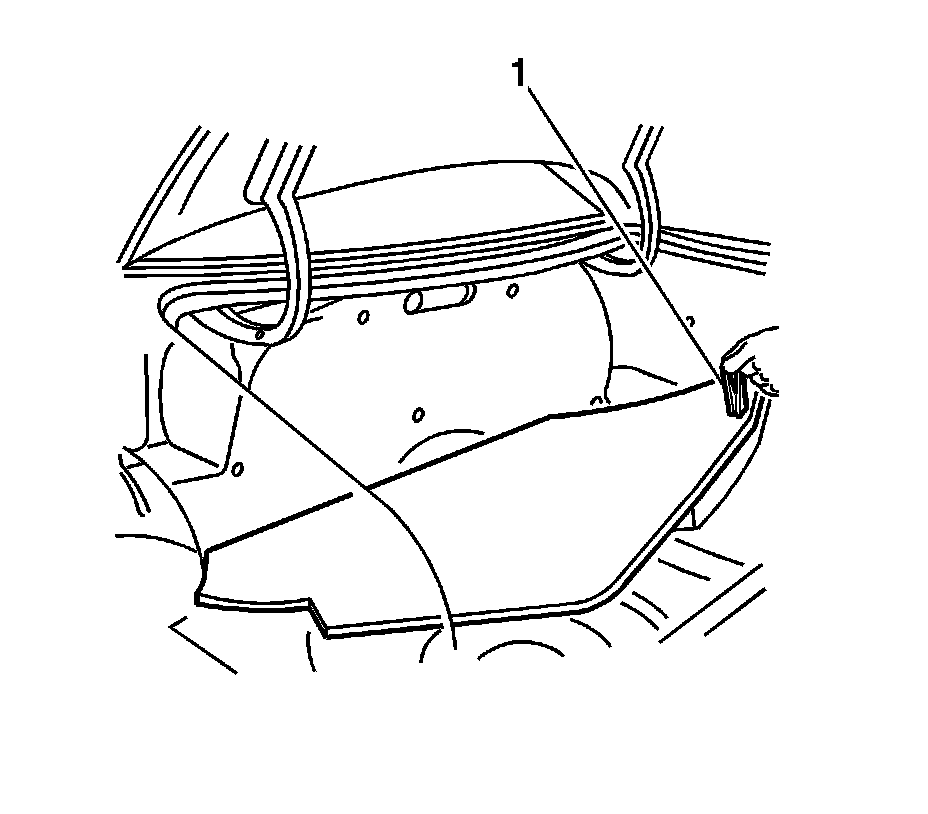 1. Lift upward on the rear edge of the rear carpet assembly (1).