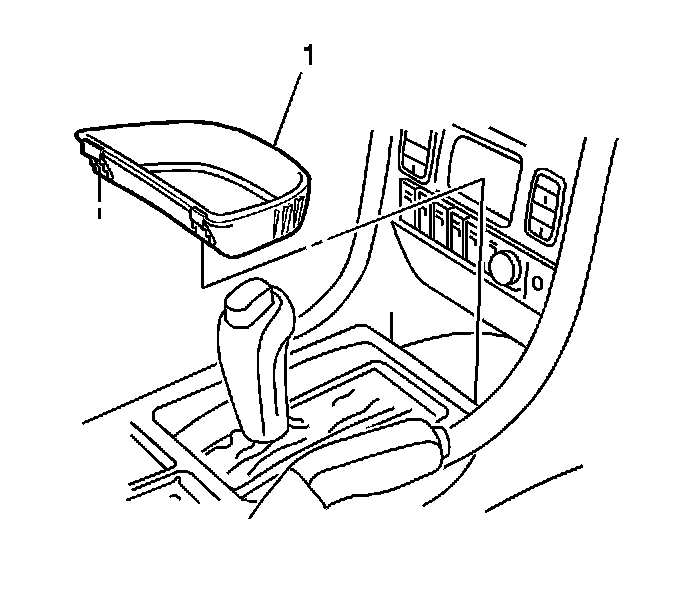 1. Remove the floor console tray insert (1) by lifting upwards to disengage it from the console.