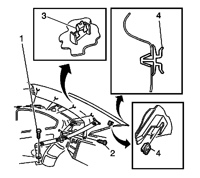 2. Slide the trim panel rearward to engage it into the retainer (4), which is attached to the body lock pillar.