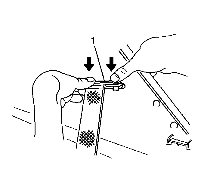 7. Disengage the seat belt guide (1), and feed the seat belt and anchor plate through the opening.