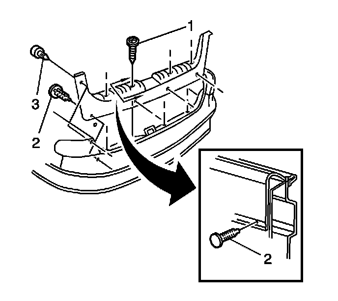 1. Remove 4 cargo area rear trim panel retaining screws (1).