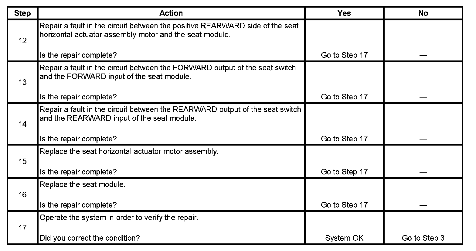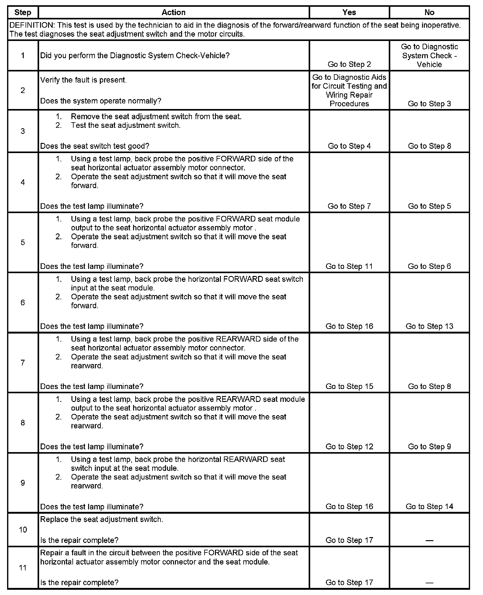POWER SEAT DOES NOT MOVE FORWARD/REARWARD