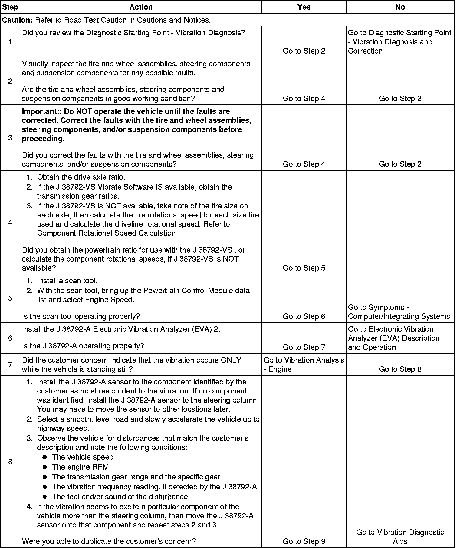 4. Obtaining rotational speed for the components rotating at both tire/wheel speed and driveline speed is critical to systematically eliminating specific vehicle component groups. These component rotational speeds can be generated by using the J 38792-VS Vibrate Software, or through calculating them manually.