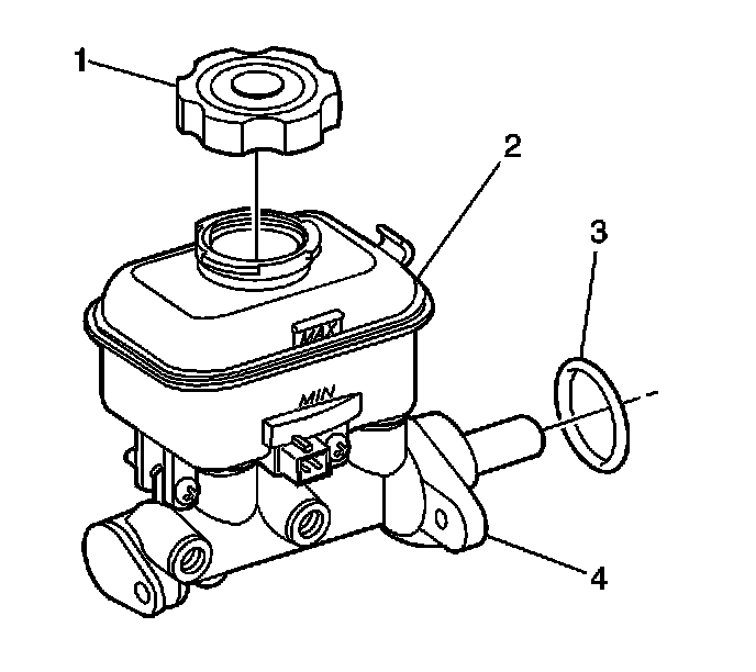 2. Install a NEW O-ring (3) to the master cylinder (4).