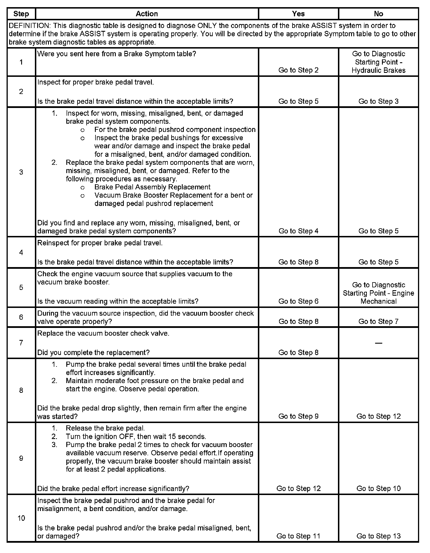 Brake Assist System Diagnosis