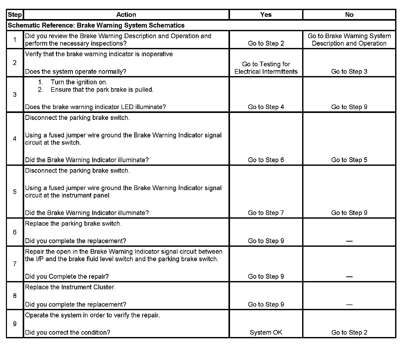 Brake Warning Indicator Inoperative