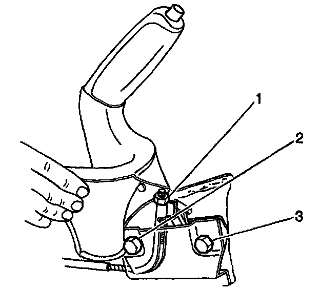 3. Install the park brake lever assembly and the 2 bolts (2, 3) to the vehicle.