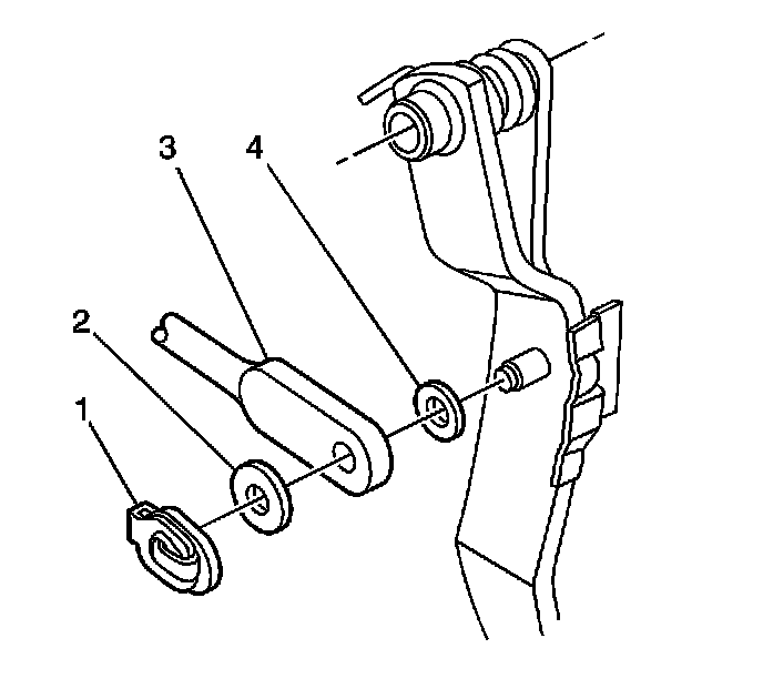 3. Apply GM Vehicle Care Dri-Slide Lubricant, GM P/N 1052948, or the equivalent molybdenum disulfide lubricant, to the pivot point (5) of the push rod on the brake pedal.