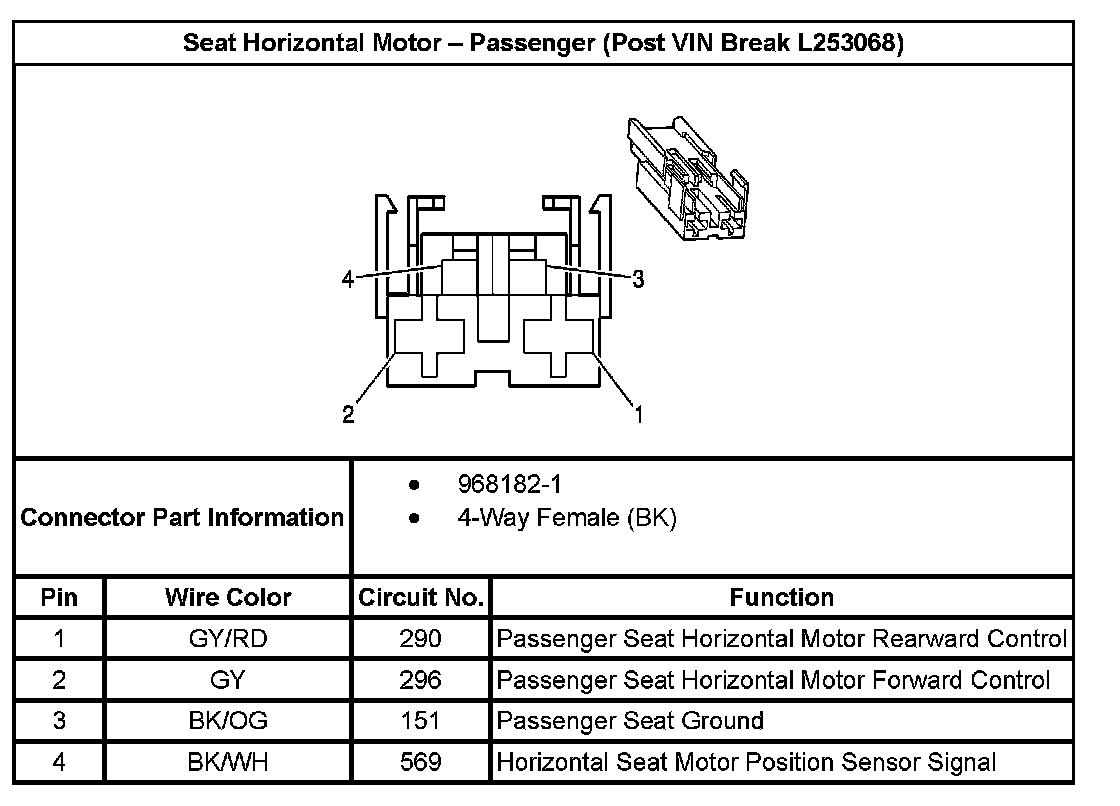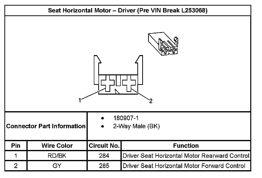Seat Horizontal Motor Driver (Pre VIN Break L253068):