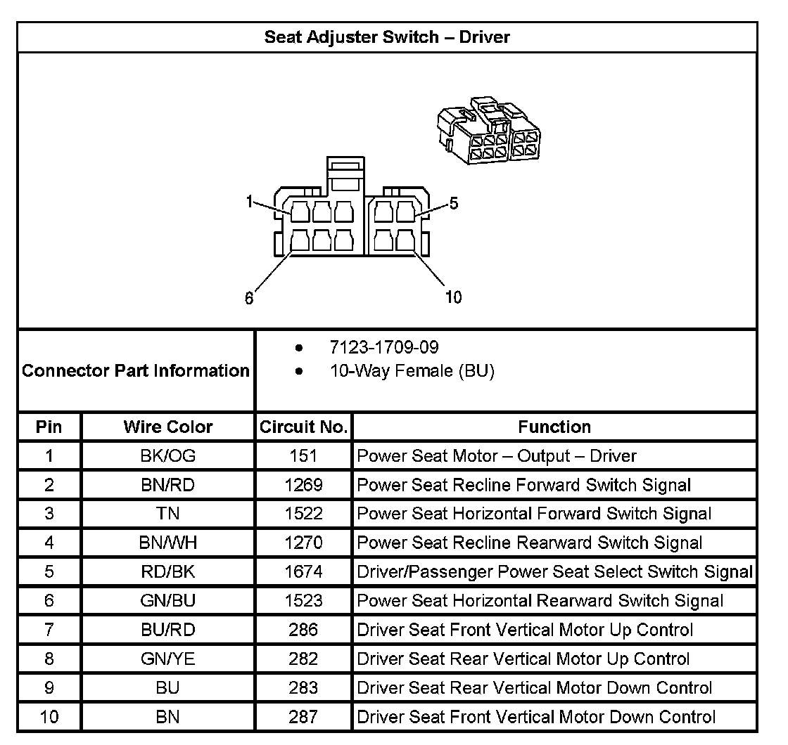 Seat Adjuster Switch - Driver: