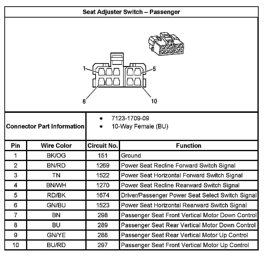 Seat Adjuster Switch - Passenger: