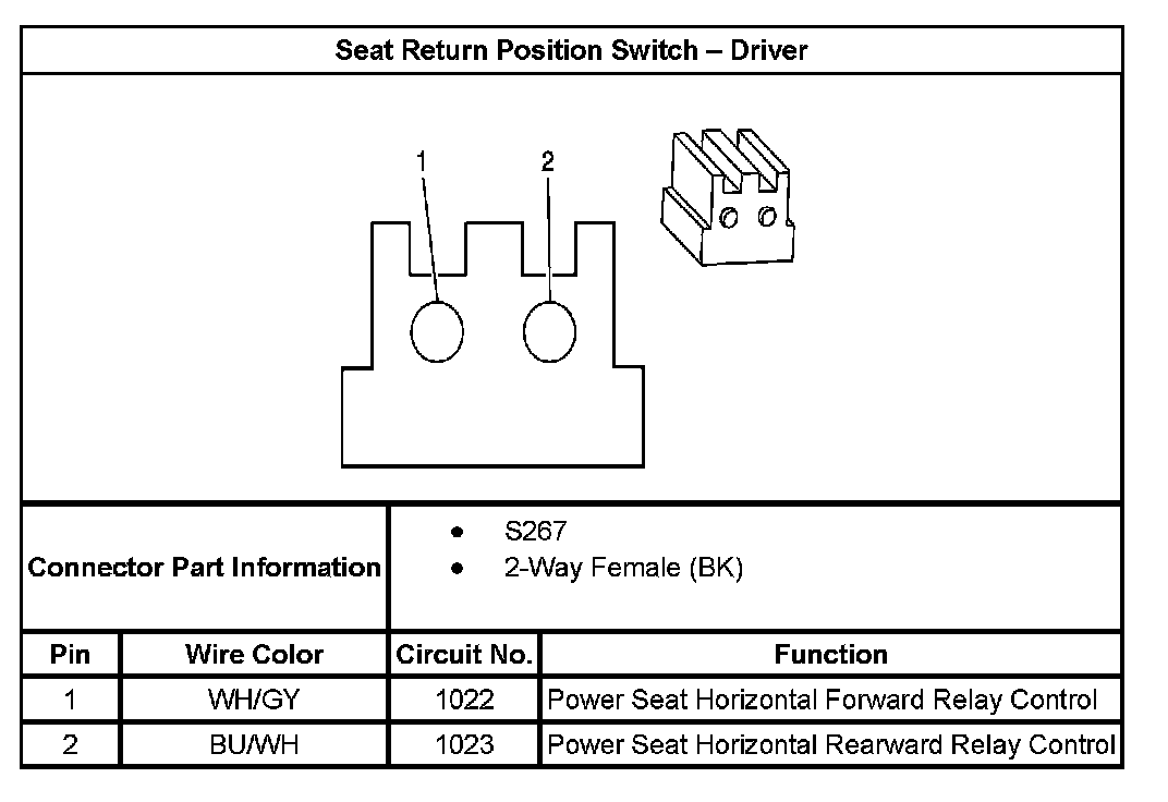 Seat Return Position Switch - Driver: