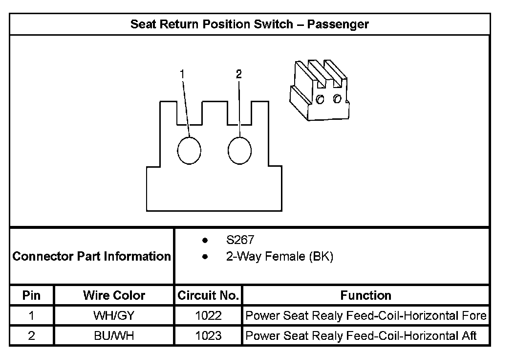 Seat Return Position Switch - Passenger: