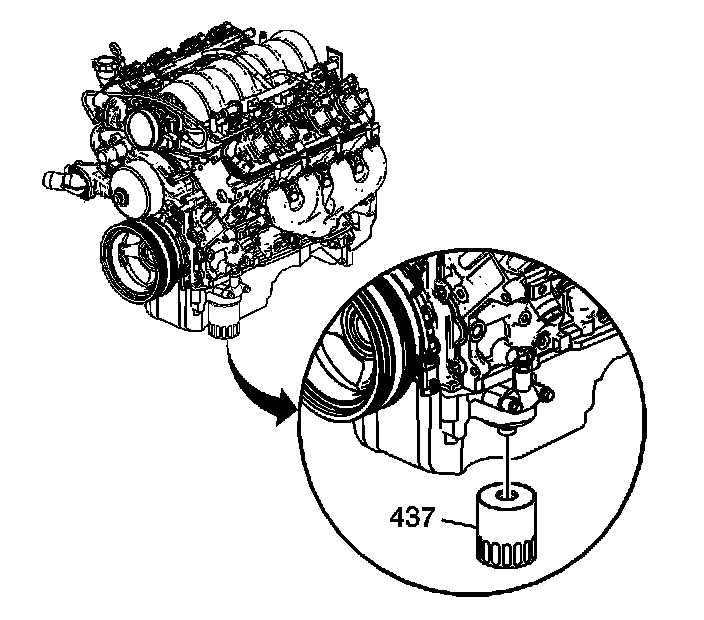 6. Remove the engine oil filter (437) from the engine block.