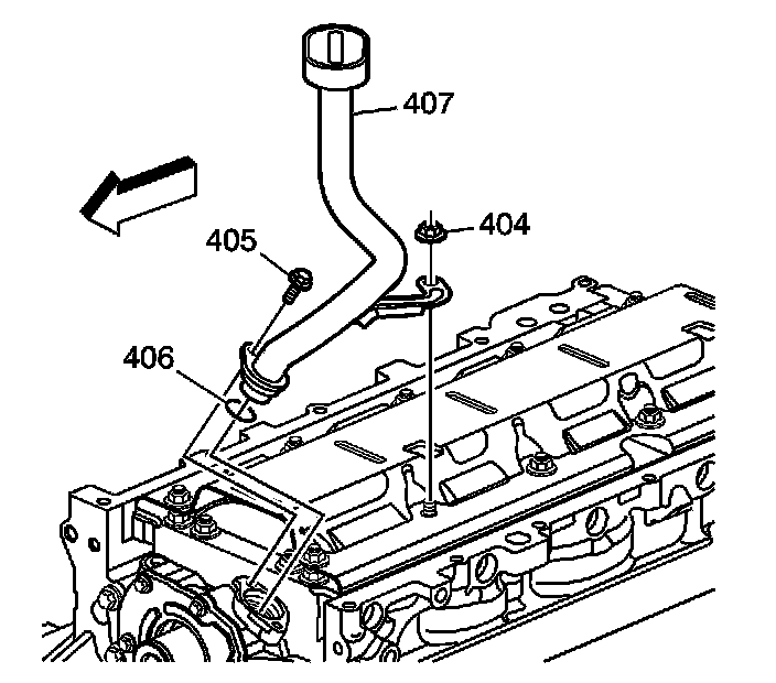 3. Remove the oil pump screen bolt (405) and nut (404).