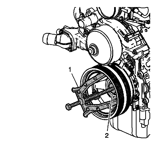 3. Use the J41816 (1) and the J41816-2 (2) in order to remove the crankshaft balancer.