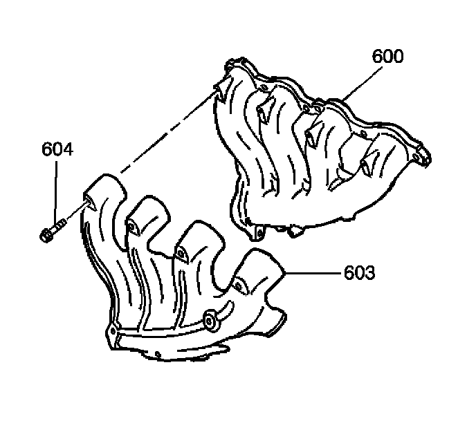 1. Tighten the exhaust manifold bolts a first pass to 15 Nm (11 ft. lbs.). Tighten the exhaust manifold bolts beginning with the center 2 bolts. Alternate from side-to-side, and work toward the outside bolts.