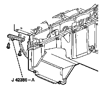 Install the J42386-A and bolts. Use 1 M10 - 1.5 x 120 mm and 1 M10 - 1.5 x 45 mm bolt for proper tool operation.
