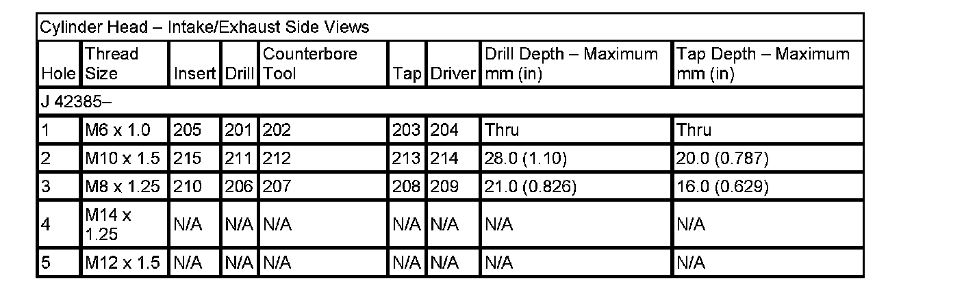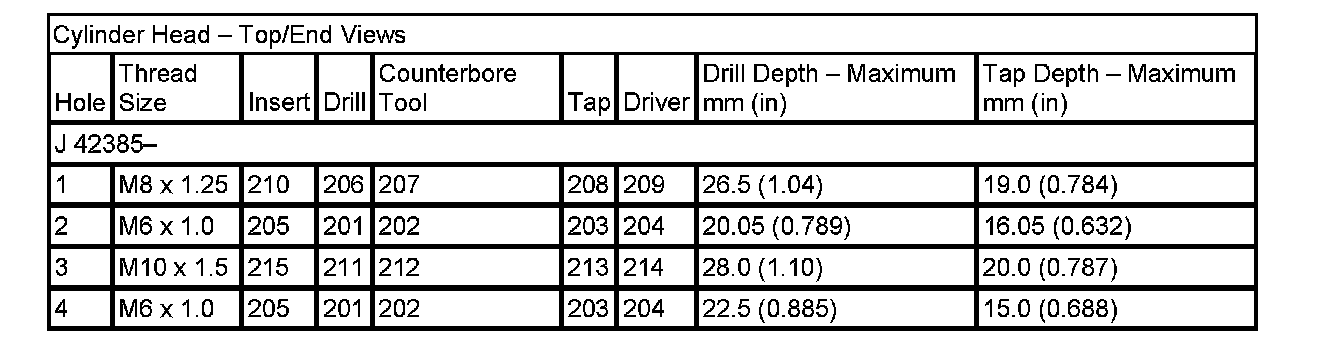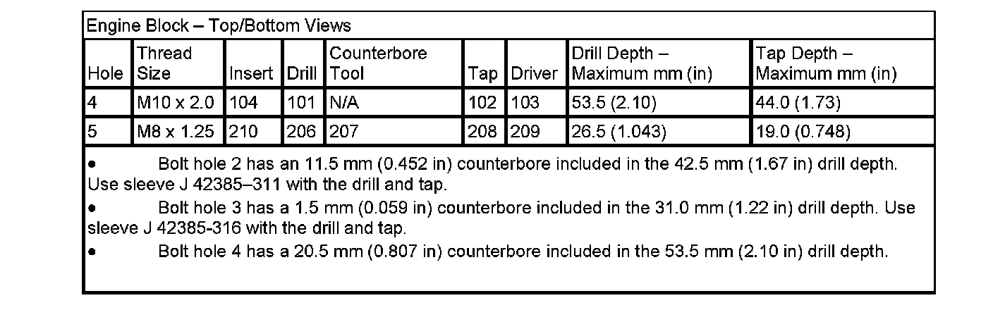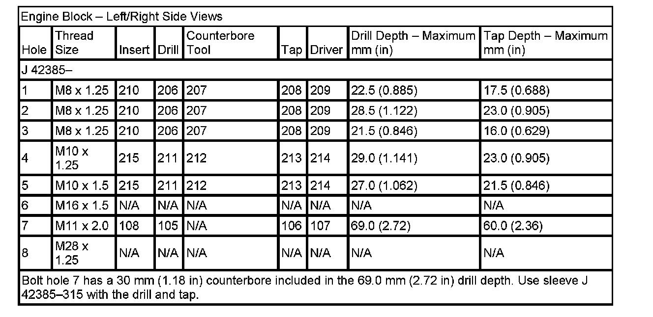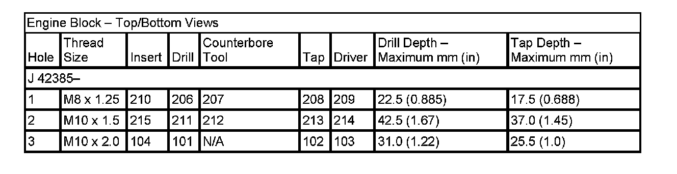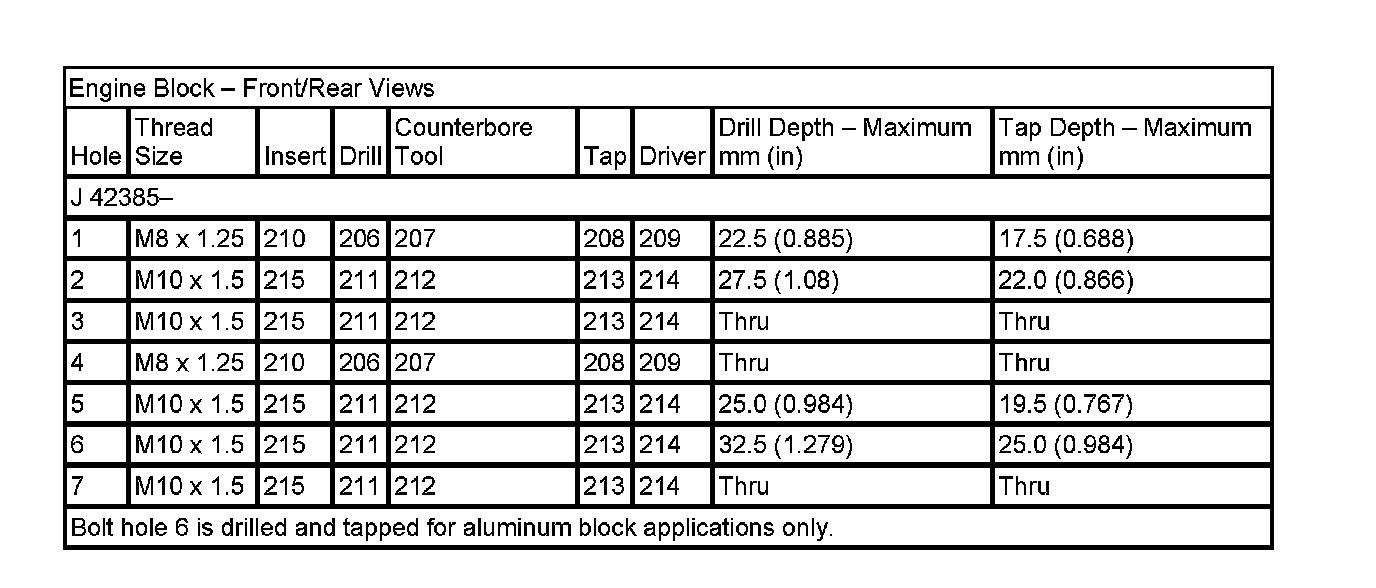 Thread Repair SpecificationsEngine Block - Front/Rear Views: