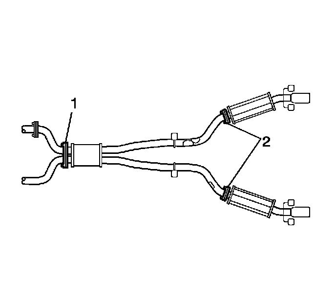 5. Remove the front muffler to rear muffler flange bolts (2).