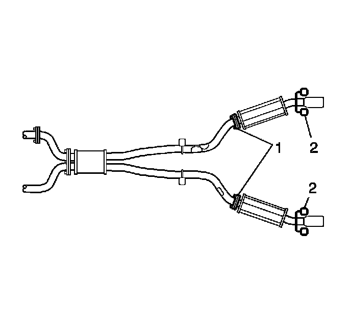 3. Remove the front muffler to rear muffler flange nuts (1).