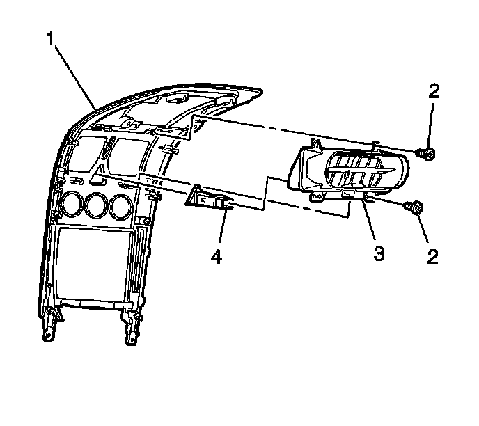 2. Remove the 4 screws (2) attaching the instrument panel center air outlet assembly (3) to the instrument panel center trim panel (1).