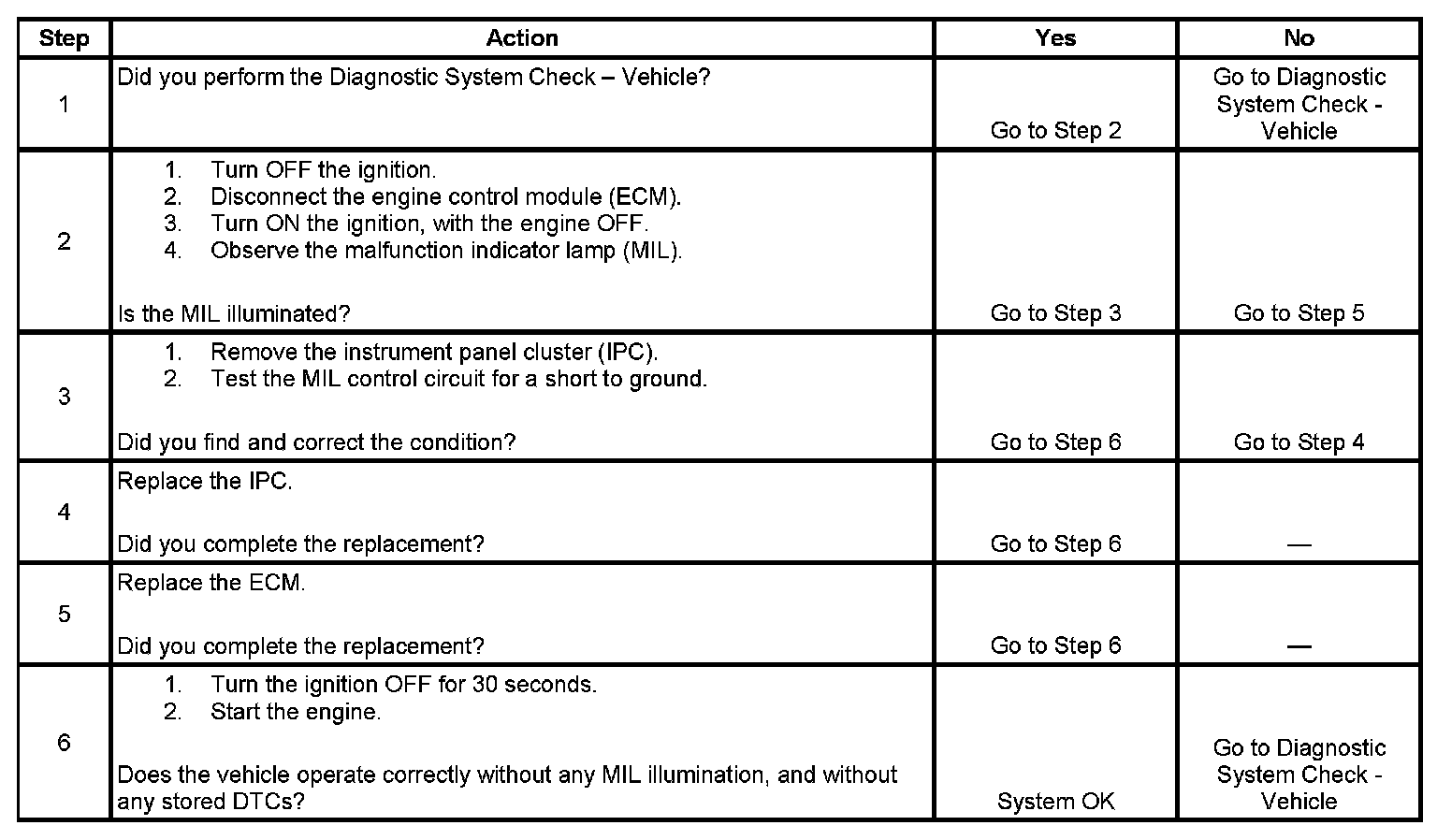 2. This step determines if the condition is with the MIL control circuit or the ECM.