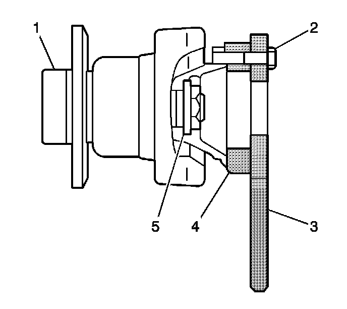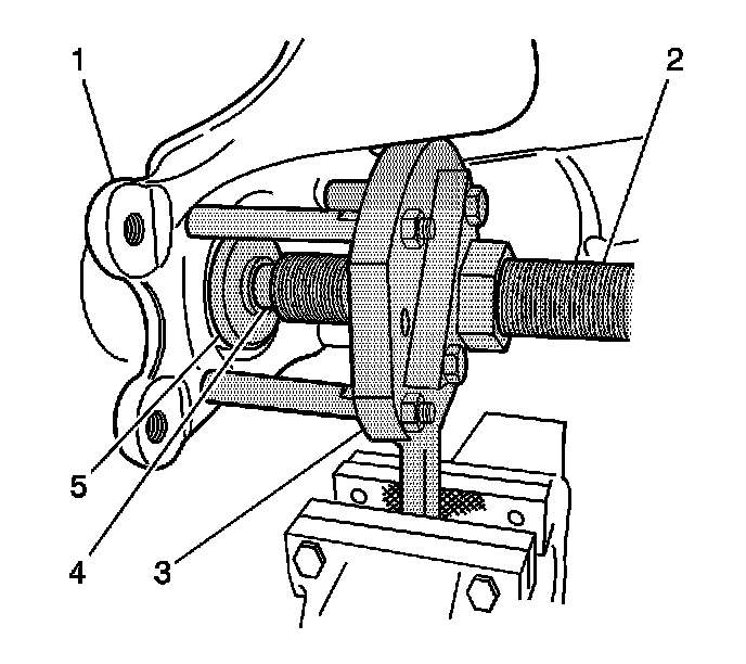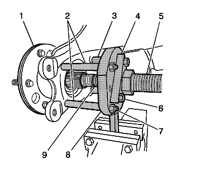 4. Install the outer constant velocity joint bolts (2) in order to retain the J-42094-2 and the J-42094-1-B to the flange.