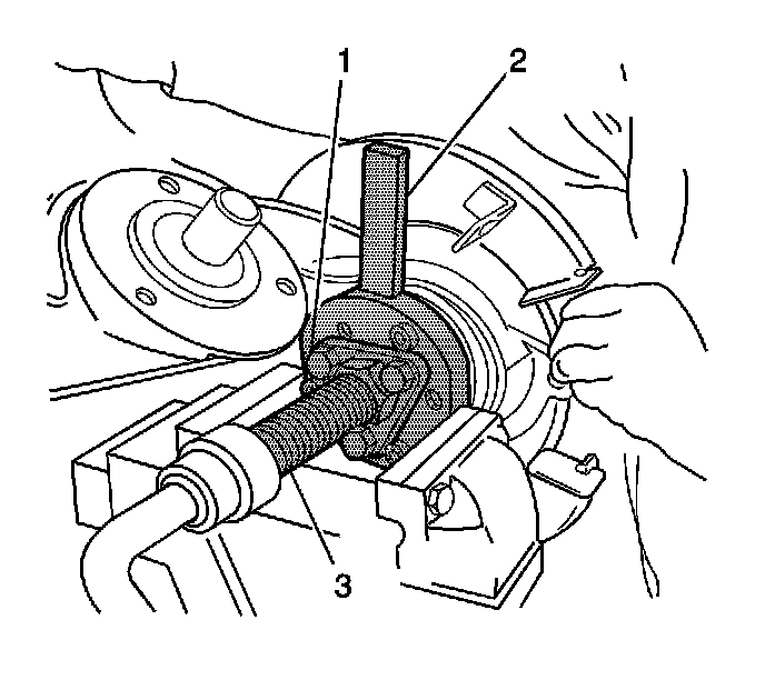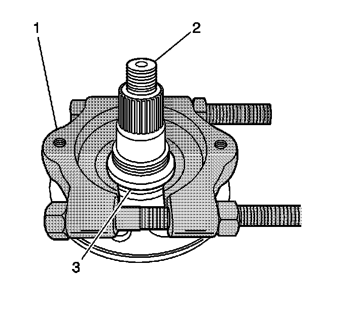 41. If you are NOT replacing the hub, remove the bearing outside inner race (3) from the hub (2).Use the J22912-01 (1), or equivalent, and a press in order to remove the race from the hub.
