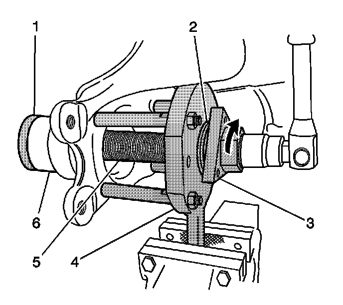 14. Rotate the J-42094-4-A in order to press the wheel bearing into the control arm. Ensure the wheel bearing is seated properly in the control arm.