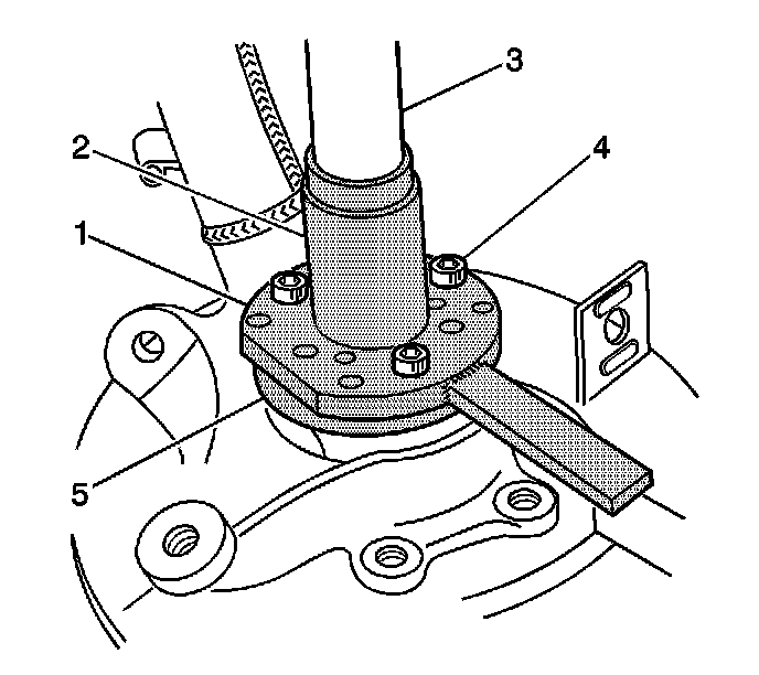 2. From the J-42094-A kit, align the holes in the J-42094-2 (4) with the holes in the rear wheel drive shaft flange.