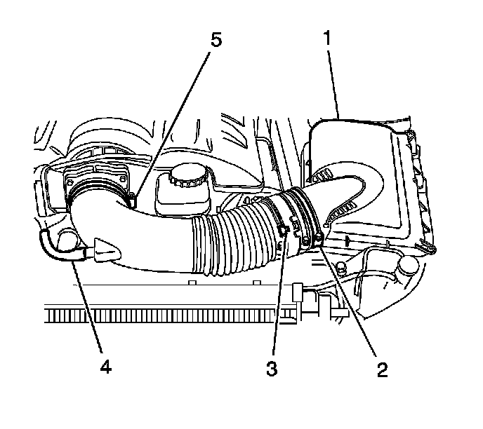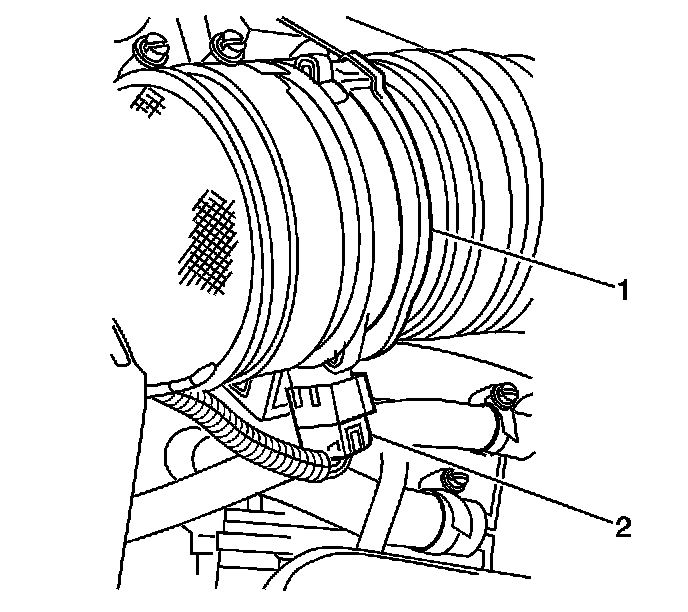 1. Disconnect the MAF/intake air temperature (IAT) sensor (2) wiring harness connector.