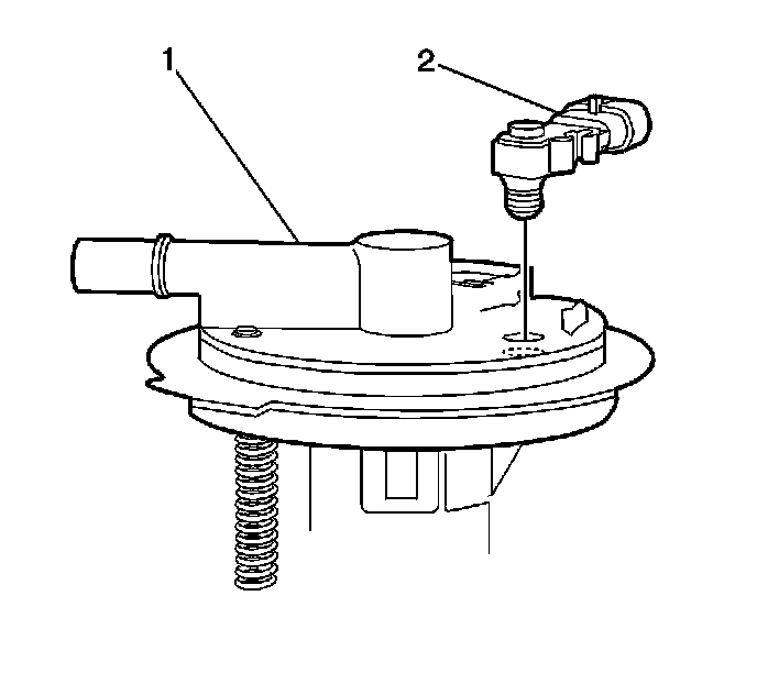 3. Remove the fuel tank pressure sensor (2) from the sender assembly cover (1).