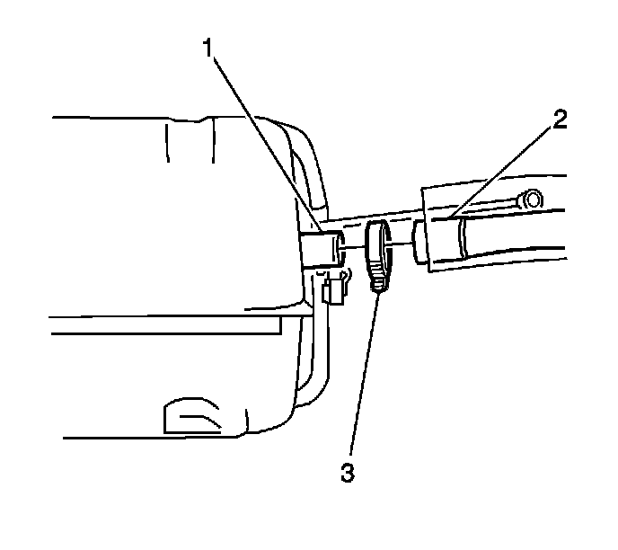 1. Install the filler neck hose (2) on the fuel tank filler neck throat (1)