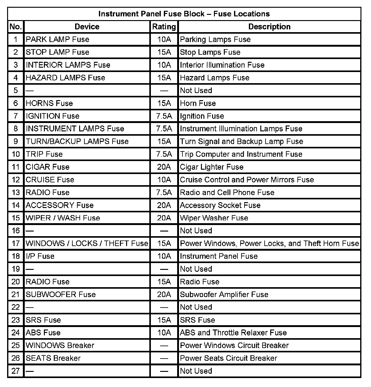 Instrument Panel Fuse Block