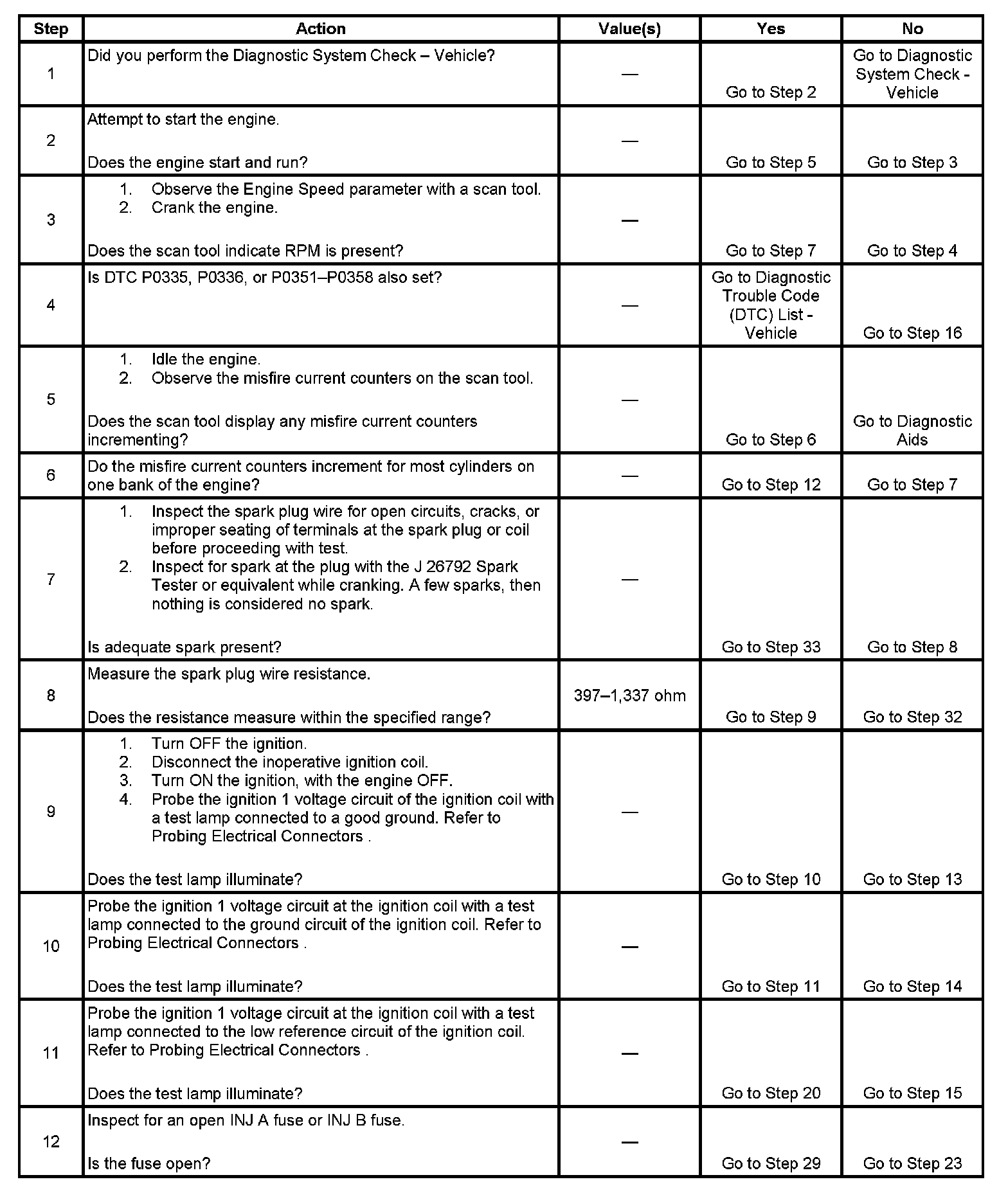 12. A good indication that the fuse is open is all off the misfire current counters are incrementing on one side of the engine. Inspect the ignition 1 voltage circuit for a grounded circuit. If the fuse is open and the ignition coil circuits are OK, inspect the injector circuits for being grounded.