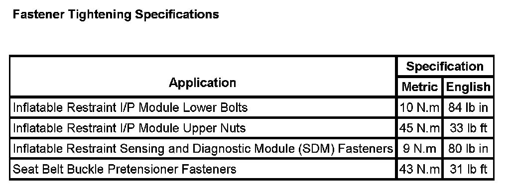 Fastener Tightening Specifications: