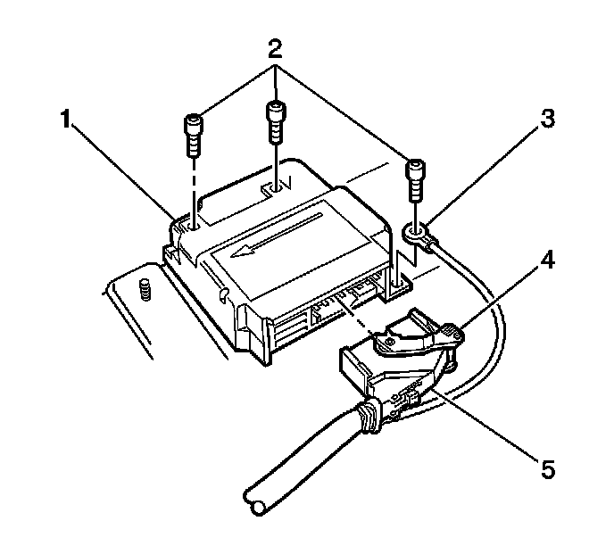 IMPORTANT: Ensure the wiring harness ground lead (3) is installed under the left rear SDM (1) retaining bolt.