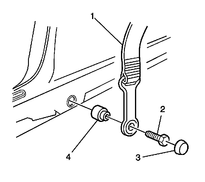 2. Remove the front seat belt lower anchor bolt (2) and seat belt spacer (4).