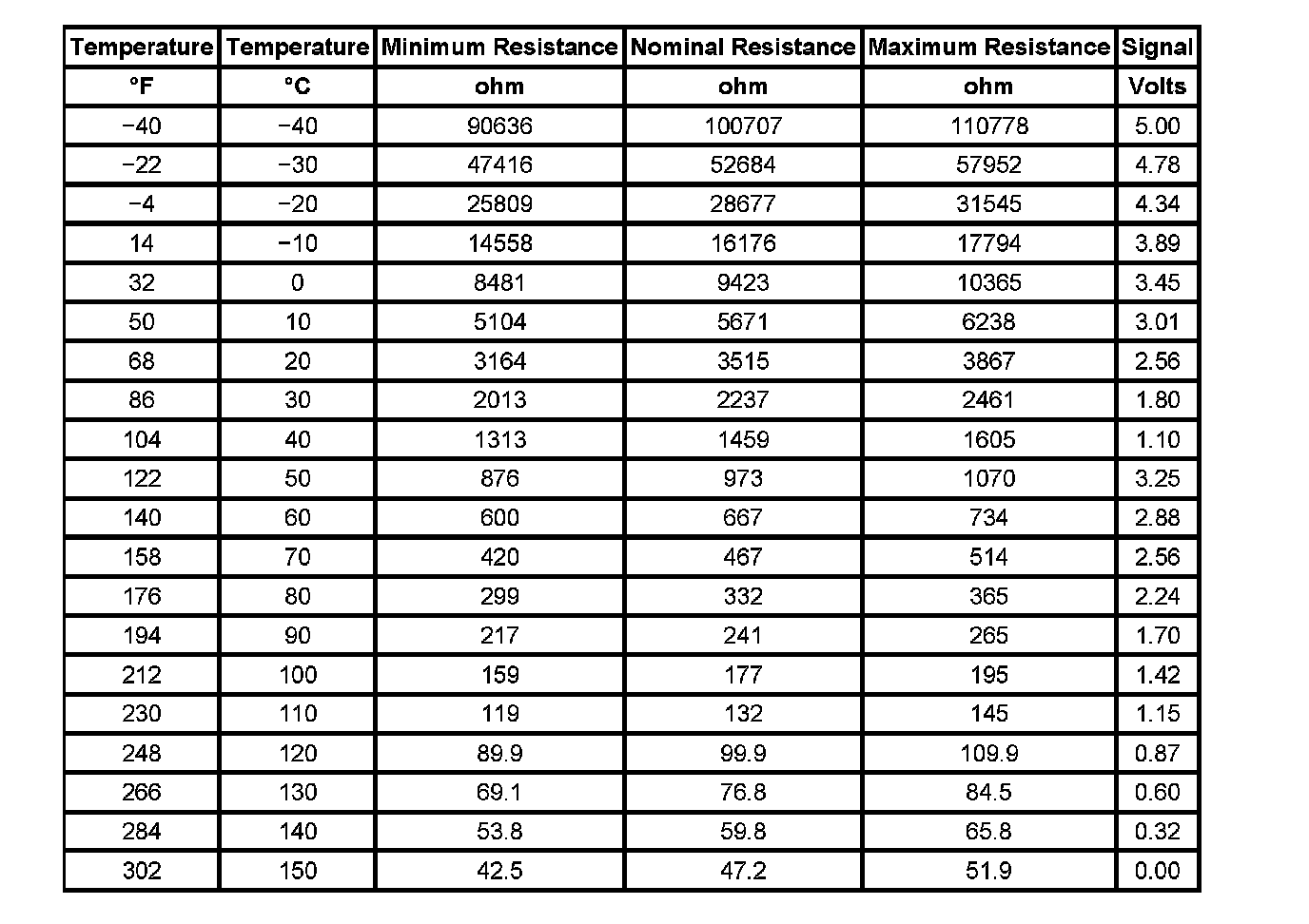 Transmission Fluid Temperature (TFT) Sensor Specifications: