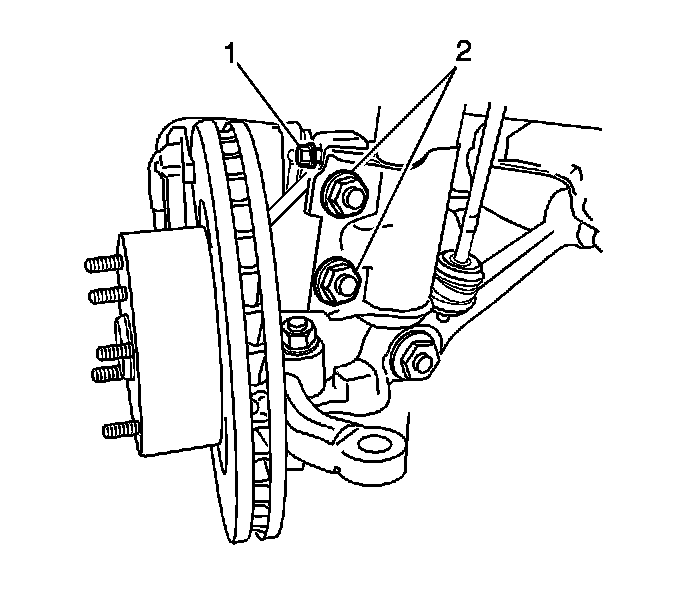 Tighten 2 nuts (2) that retain the strut to the knuckle.