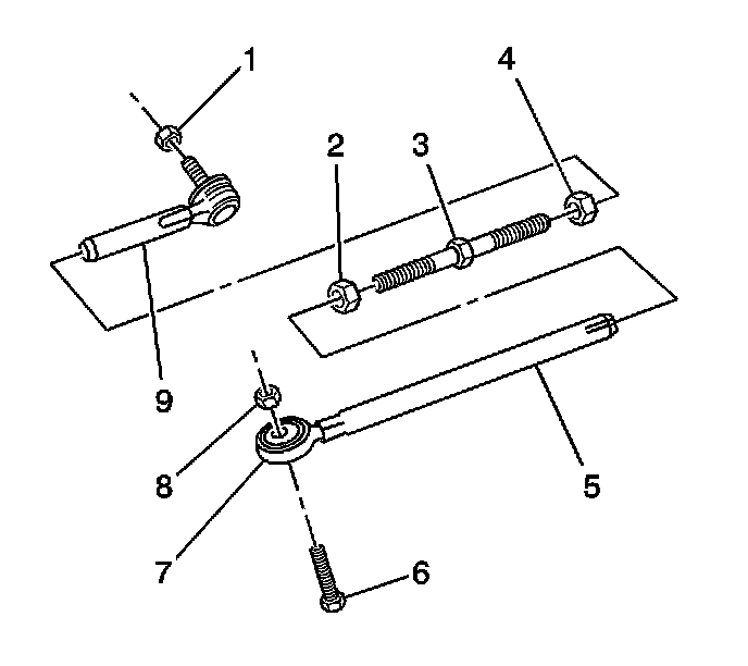 4. Use a wrench on the hexagonal crimped section of the outer adjustment link (9) in order to hold the position of the ball joint.