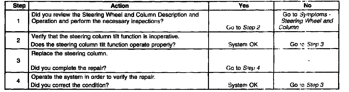 Steering Column Tilt Function Inoperative
