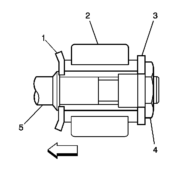 3. Install the rod retainer (1) to the rod (5) with the convex side toward the control arm (2).