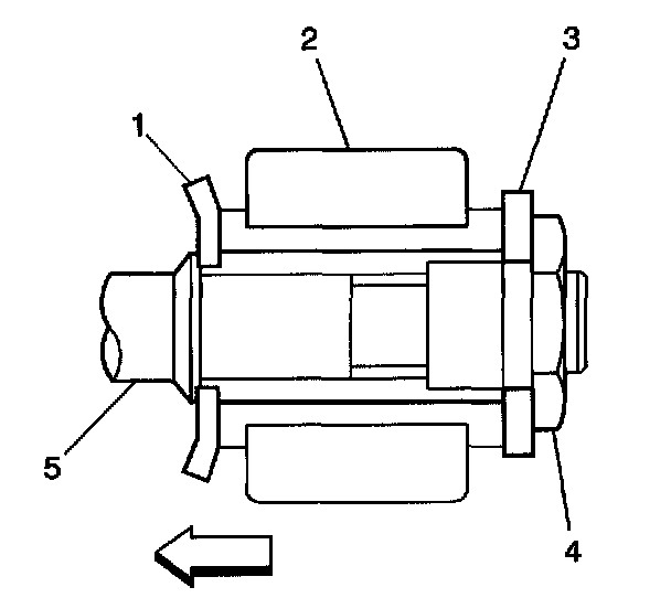 3. Install the rod retainer (1) to the rod (5) with the convex side toward the control arm (2).