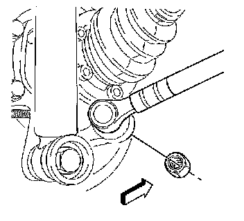 8. Remove the nut and the bolt that retain the inner adjustment link to the rear suspension support.