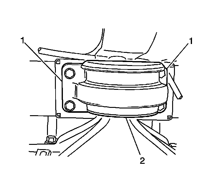 8. Remove and discard the 4 bolts (2) that retain the mount (1) to the body.