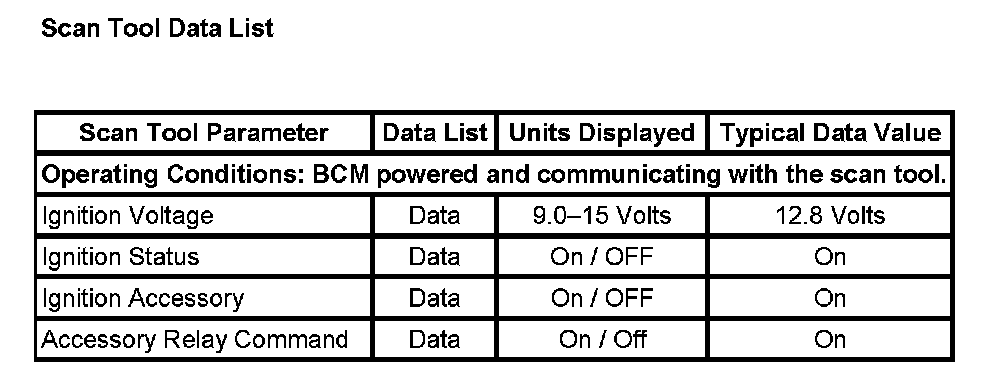 Scan Tool Data List: