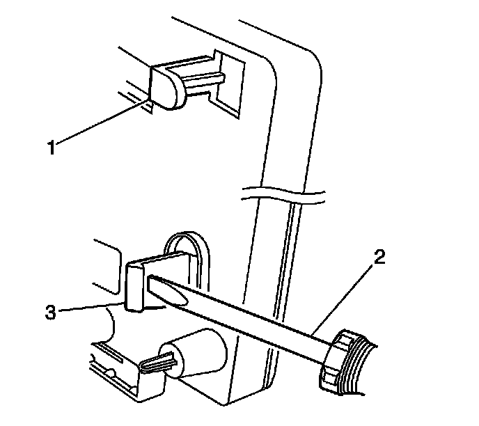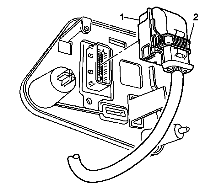5. Using a small screwdriver, pry the locking tab from the transmission control module (TCM) connector (2).